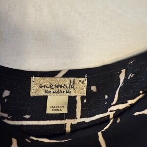 This OneWorld "Live and Let Live" top combines artistic flair with everyday comfort. Featuring a cream abstract grid print over a black backdrop, it's finished with a flattering hi-low hem that adds movement and coverage. The rayon-blend fabric offers a soft drape, making it perfect for layering or wearing on its own. Brand new with tags!