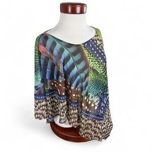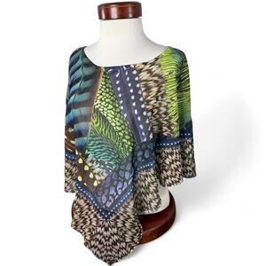 OneWorld - Sheer Feather Poncho Blouse XL - Boho Fairycore Festival Top