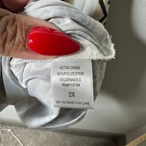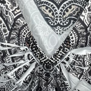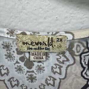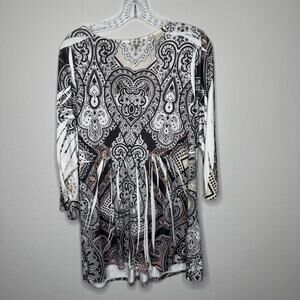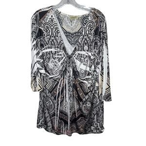 OneWorld Women’s 2X Boho Paisley Print Top Black White Beige Stretch Blouse