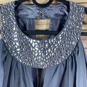 One by Eight Halter Dress with Jewels around neckline. Zippered back with 3 hook latch.