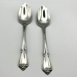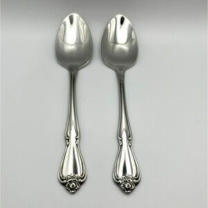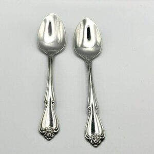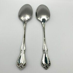 Oneida ARBOR ROSE TRUE ROSE 1881 Rogers Stainless Flatware TWO Teaspoons Spoons
