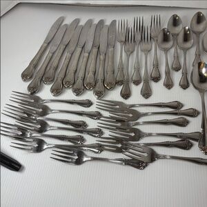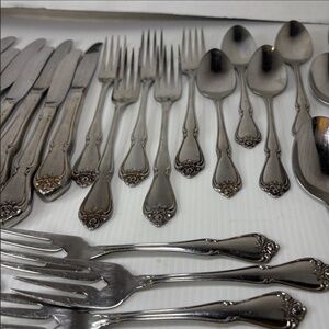 Oneida ARBOR ROSE TRUE ROSE Stainless Flatware Set 1881 Rogers Lot Of 43 USA