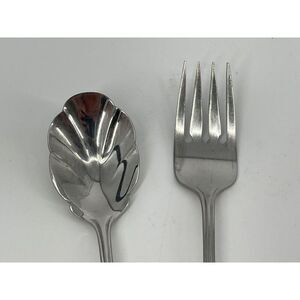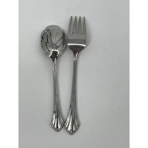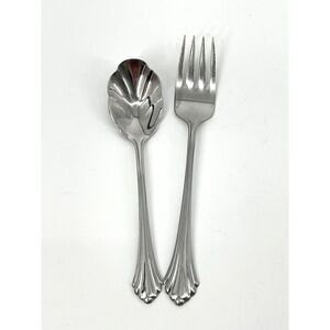 Oneida BANCROFT Stainless Ridged Flared Tip 6 1/8” Sugar Spoon 6 3/4” Salad Fork
