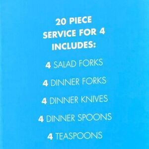 Includes four dinner forks, four salad forks, four dinner knives, four dinner spoons, and four teaspoons.