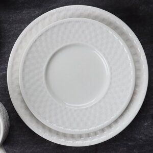Oneida Casual Settings Basket Weave Salad Plate and Flat Cup & Saucer Set of 4