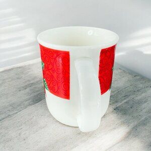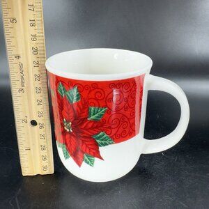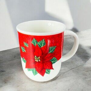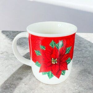 Oneida China Red Poinsettia Design Ceramic Coffee Mug Cup Set 2 Porcelain Mugs