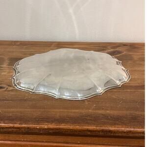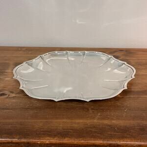 This vintage Oneida Chippendale silverplate sandwich tray measures 11 inches and features a stunning scalloped edge design with timeless elegance. Crafted in the USA, this tray is perfect for entertaining, weddings, or vintage-inspired home decor.