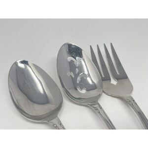 Oneida Community Chatelaine Glossy Serving Spoons Slotted Fork 8.25” Set Of 3