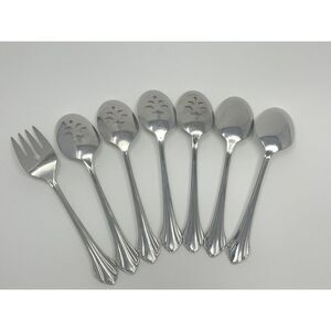 Oneida Community Stainless CLARETTE 8.25" Serving Slotted Spoons Fork Set Of 7