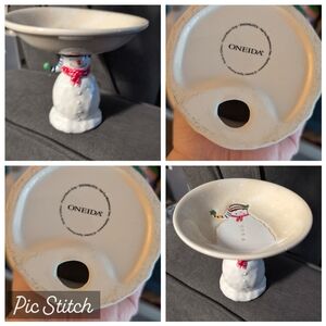This charming Oneida Snowman, in a soothing cream color, is the perfect addition to your holiday decor. Its whimsical design captures the festive spirit, making it an ideal centerpiece for your seasonal celebrations.