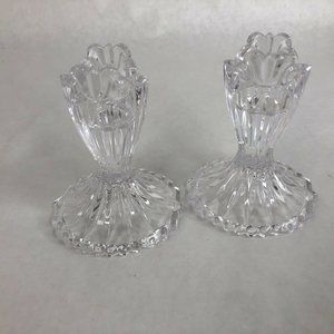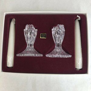 Oneida Crystal Augustine Console Candlesticks Made Austria 3.5” Tall New In Box