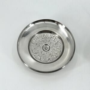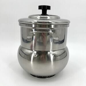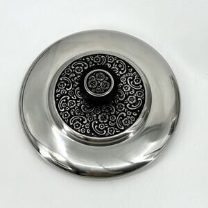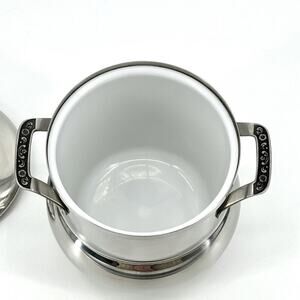 Oneida Custom 18/8 Stainless Ice Bucket MCM Ornate Floral Trim with Black Inlay