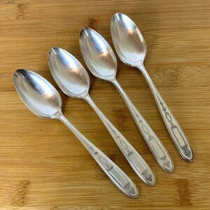Elegant set of 4 vintage Oneida Grosvenor teaspoons in silverplate. Perfect for collectors or adding a timeless touch to a dining collection.