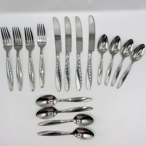 Oneida Lunette 16 Piece Stainless Steel Flatware Set Forks Spoons Knives 18/10