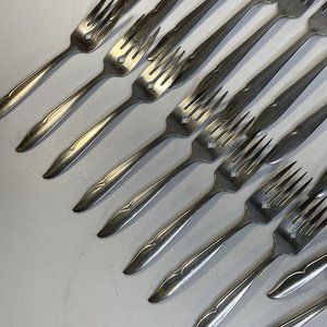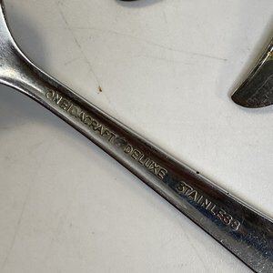 Nice preowned condition. Normal use marks. One fork has discolored area shown in picture.