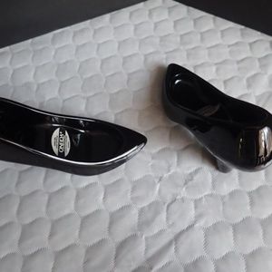 Oneida Pair of Black 5" Heeled Hand Blown Glass Shoes