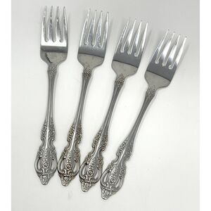 Oneida Renoir-Pembrooke Stainless Floral Pierced Salad Forks 6.75" Set Of 4
