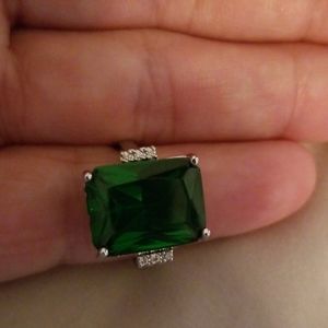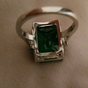 Emerald Green Stone Emerald Cut size 7 from Greece. Stamped SS925 very nice ring for the price without paying 1K's.