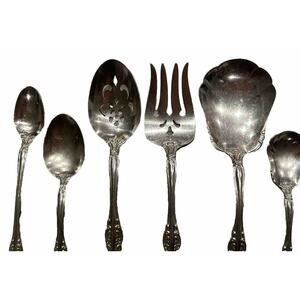 Add an elegant touch to your dining table with this silver Oneida Stainless MICHELANGELO Flatware 6 Piece Serving Set. Crafted from high-quality stainless steel, this durable set includes a serving spoon, pierced serving spoon, serving fork, condiment spoon, iced tea spoon, and a scalloped casserole spoon. The exquisite design of this flatware set features intricate scrolls and leaves that are sure to impress your guests.