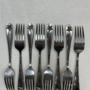 Oneida Tindra Embossed Star Glossy Stainless Flatware Dinner Fork Set Of 8 & Seving Fork