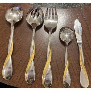 Oneida USA Golden Aquarius Stainless Steel 5 Piece Hostess Set Spoon Fork Knife
