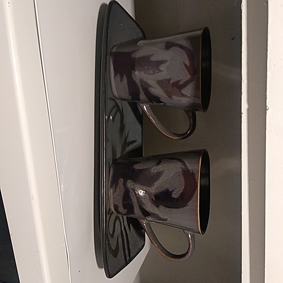 2 beautiful mugs on elegant tray hard to replace pattern