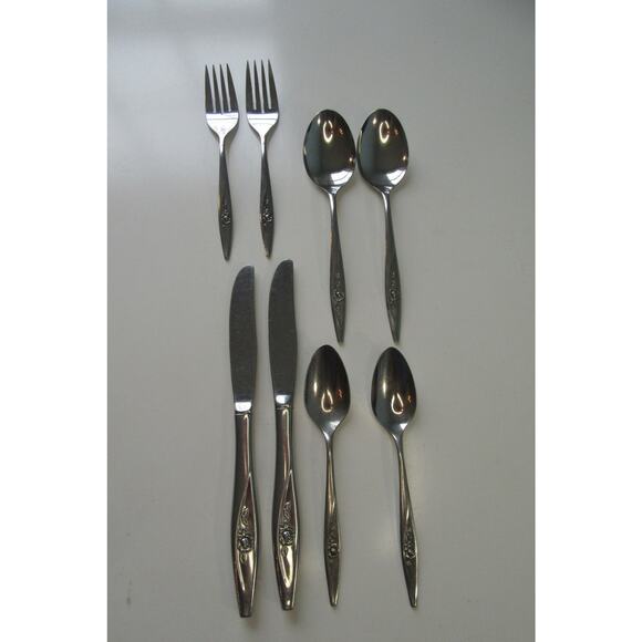 Oneidacraft Deluxe Lasting Rose Stainless Steel 4 Piece Serving Set For Two.