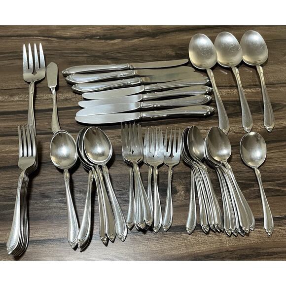 Oneidacraft Deluxe Stainless Flatware "Shasta" Pattern 48 PCS Spoons Frks Srvg