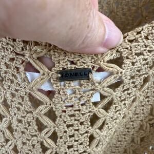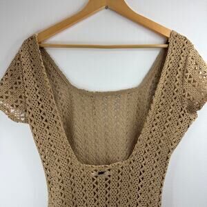 Oneill Beige Crochet Short Sleeve Maxi Swim Coverup M Beachy Cruise Vacation