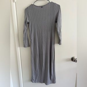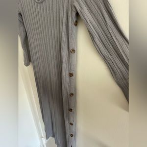 Light grey body con ribbed dress with side button detail