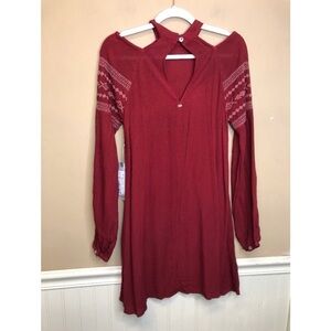 Oneill Cold Shoulder Boho Red Dress Size S NWT