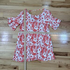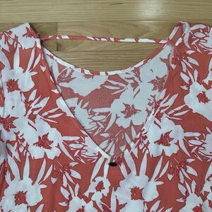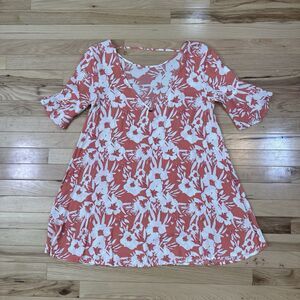 This O'Neill dress for women in size medium features a Hawaiian floral pattern, 3/4 sleeves, and a scoop neckline. Made from viscose fabric with a rayon texture, the peach-colored dress is perfect for casual occasions, beach surfing, or other summer or spring activities. With a fit & flare, shift, mini, and A-line style, this bohemian-themed dress is easy to care for as it is machine washable. Made in India, it is a stylish and comfortable choice for a day of fun in the sun.