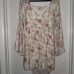 O'neill Gretchen Bell Sleeve Blouson Dress Size large L White Floral Bohemian