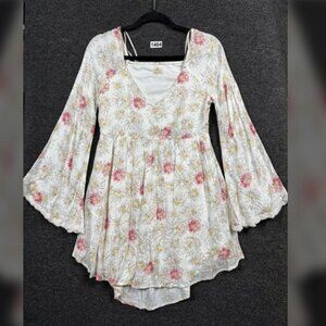 Oneill Gretchen Bell Sleeve Blouson Dress Womens Size large White Floral Bohemian - O'Neill