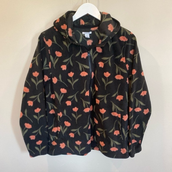 Oneill Hoodie Womens Medium Black Pink Floral Fleece Hooded Boho Beachy Pullover