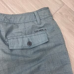 O'neill surf wear hybrid men's size 32 casual flat front blue plaid chino shorts. In excellent condition from a smoke free home.