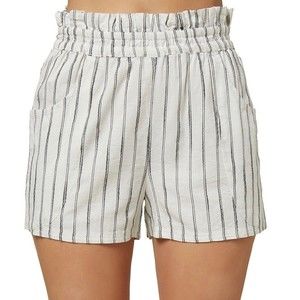 Oneill Women's Canter White Striped Paperbag Shorts Size Small Cotton/Viscose High Rise - Elastic Waist 2.5" inseam Excellent Pre-owned Condition