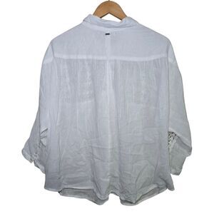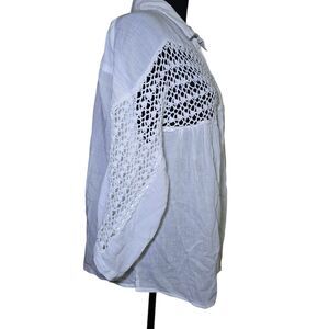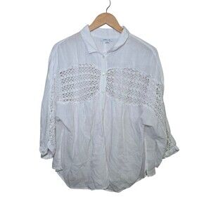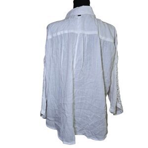 On'eill Women’s White Crocheted 3/4 Sleeve Blouse Size Large Cotton Button Up