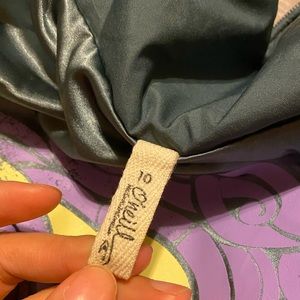 Ruched side has 2 zipped side bottom pockets, belt loops with no included belt.