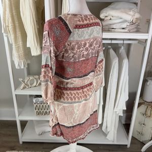 O'neill women's sz. small paisley tunic length long line top, 3/4 sleeves #1745