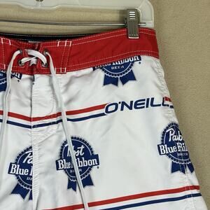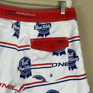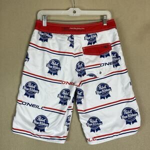 O'neill x Pabst Blue Ribbon Swim Trunk Mens 29 White Drawstring Waist Pockets