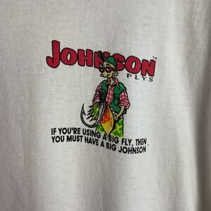Get ready to reel in some compliments with this awesome vintage Big Johnson fishing tee! This classic crewneck is made from pre-shrunk cotton and proudly made in the USA. The white color makes it a versatile addition to any wardrobe. Perfect for fishing trips, casual outings, or just lounging around. Grab this unique piece of nostalgia before it swims away!