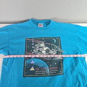 Oneita Star Wars TIE Interceptor VTG Tshirt Adult XL Blue Single Stitch 90s