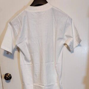 Oneita Womans White T Shirt Sz L Logo Beach Ware New with out tags