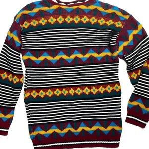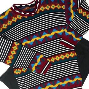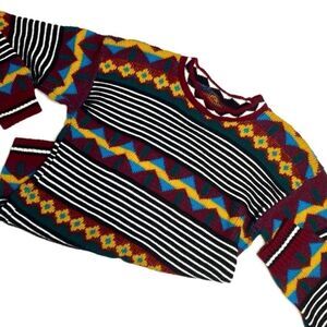 One of a Kind Vintage Handmade Multicolor Rainbow Geometric Pullover Sweater
