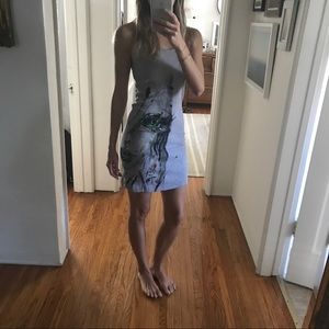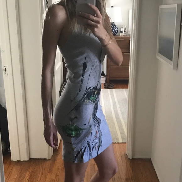One-of-Kind Racerback Dress. Gray American Apparel bodycon dress with hand-painted details look closely its a woman's face). This is a really cool dress, very flattering and hugs in all the right places. Originally paid $100 for it at a street fair in NYC.