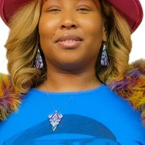 Elevate your style with these stunning "Glacial Earrings" handcrafted by acclaimed polymer clay artist, Jon Stuart Anderson. Each pair is a unique statement of wearable art with cooling blues and bold purples blended together in perfect harmony. To ensure both elegance and comfort, the lightweight Fimo clay is paired with sterling silver findings, adding a touch of sophistication to their already captivating appeal.