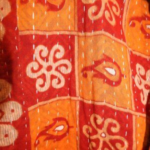 Wrap yourself in art you can wear! This stunning kantha quilted jacket is handcrafted from upcycled vintage saris, stitched together with traditional running kantha embroidery for that authentic, lived-in charm. Each piece is completely unique — no two are ever the same. Lightweight yet cozy, it’s perfect for layering in any season.