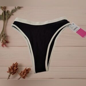 Oneone Swimwear Black Bikini Bottom Size Small Black/Cream Ribbed Fabric NWT