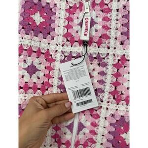 Onepiece Coverup Crochet Short Jumpsuit Pink White size XS/S Resort Retro Rare
